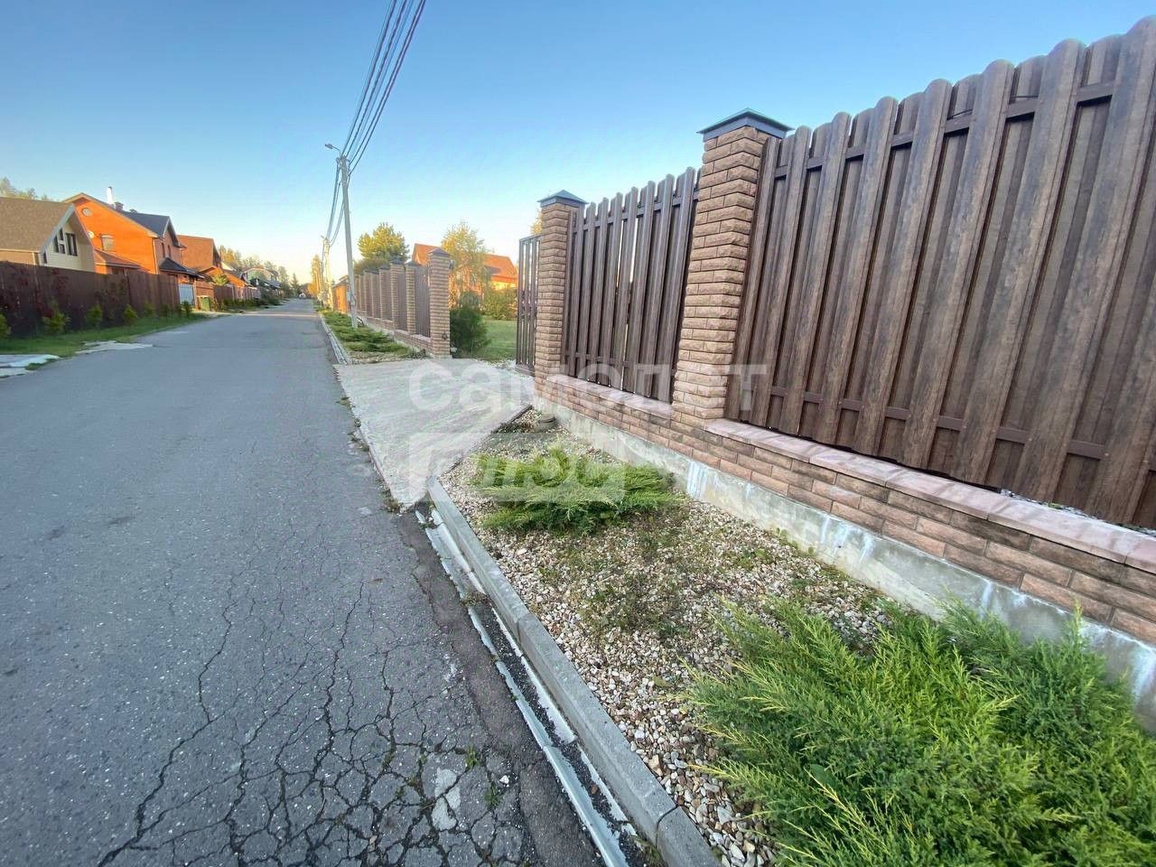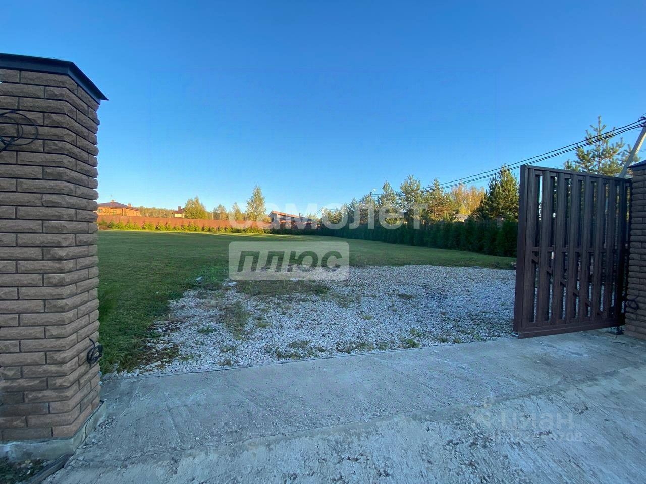 Участок выровнен, выполнен дренаж, подведены коммуникации. Вокруг капитальный забор из кирпича с монолитной лентой (90 м).
