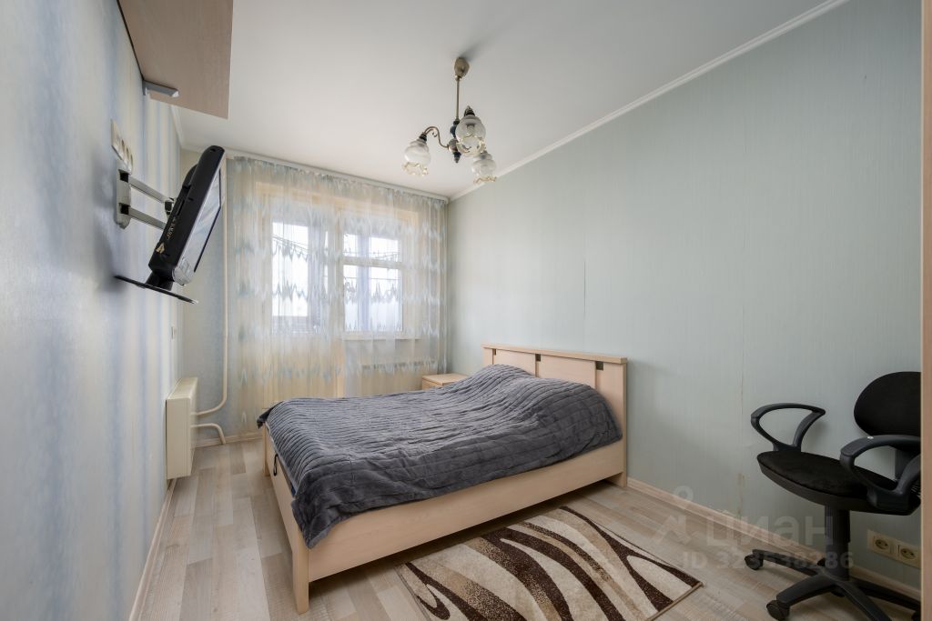 В квартире распашная планировка. Большая кухня, 2 изолированные комнаты. Окна спальни выходят на двор и детскую площадку, из зала и кухни просматривается инфраструктура района.