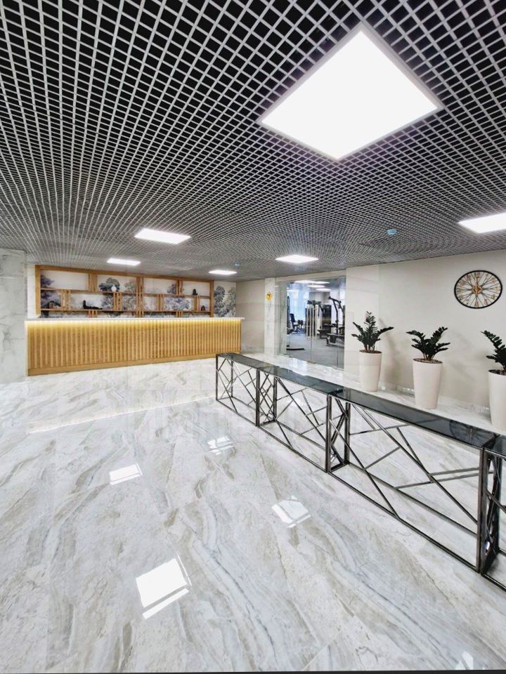 При входе резиденты и их гости попадают в стильное лобби с ресепшеном, а также лаундж-зону. Стильный интерьер в светлых тонах создает домашнюю уютную атмосферу и в то же время подчеркивает статус комплекса.